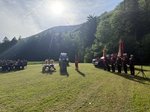 Feuerwehrkurat Monsignore Alois Rockenschraub hielt einen Wortgottesdienst im Feld und segnete in diesem Zuge auch die beiden neuen Einsatzfahrzeuge der Feuerwehr Langwies und des Roten Kreuzes Ebensee.