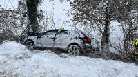 Aus bisher unbekannter Ursache kam ein PKW von der Fahrbahn ab und prallte im Graben gegen einen Baum.