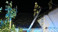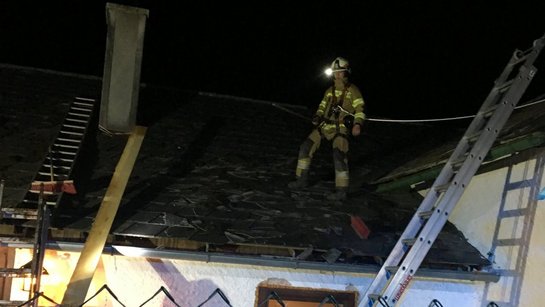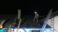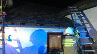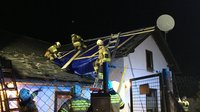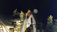 Als die Einsatzkräfte vor Ort eintrafen, fanden Sie ein teilweise abgedecktes Hausdach vor. Die Kameraden entfernten die losen Holzschindeln, um weitere Schäden zu vermeiden und deckten das Dach mit einer großen Plane ab.