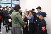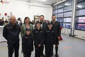 Beim gemeinsamen Treffen im Depot der Feuerwehr konnten die Politiker die Bekleidungssets an die Jugendkinder überreichen.