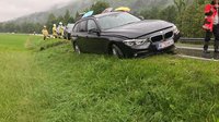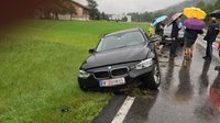 Aus bisher unbekannten Gründen kam ein PKW von der Straße ab, fuhr noch einige Meter am Rasen weiter, bis er letztendlich zum Stillstand kam. Die Insassen blieben unverletzt.
