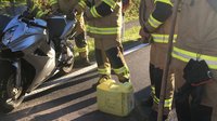 Ein Motorradfahrer kollidierte aus bisher unbekannten Gründen mit einem PKW. Der Verunfallte wurde vom Notarzt und der Rettung erstversorgt und ins LKH transportiert. Die Kameraden banden das ausgelaufene Öl des Motorrads und reinigten die Fahrbahn. Während des Einsatzes war die B145 teilweise für den Verkehr gesperrt.