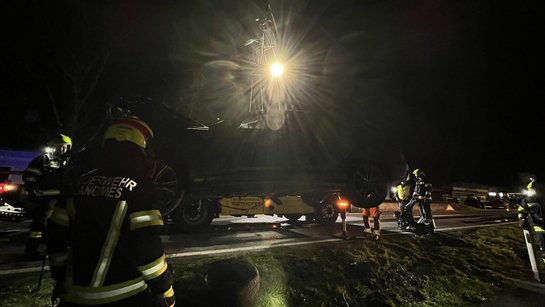 Umgehend wurde ein zweifacher Brandschutz aufgebaut, die Unfallstelle abgesichert und ausgeleuchtet. Die B145 wurde für die Dauer des Einsatzes total gesperrt.