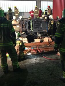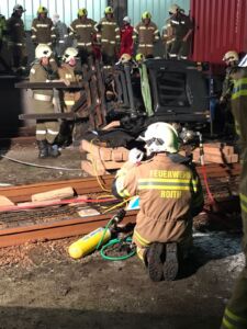 Beim Eintreffen wurde ein Gabelstapler vorgefunden, welcher beim Verladen eines Eisenbahnwagons seitlich ca. 1,5m abstürzte. In dem Stapler war eine Person eingeklemmt. Sofort wurde begonnen die Unfallstelle auszuleuchten, sowie den Gabelstapler mit dem Spreizer und einem Hebekissen anzuheben, um die verletzte Person zu befreien. Die Person wurde vom Rettungsdienst versorgt und ins LKH Bad Ischl gebracht.