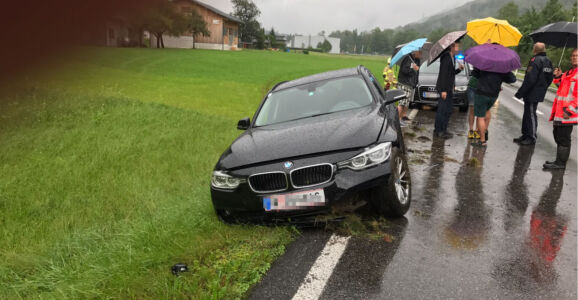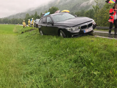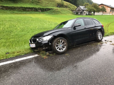 Aus bisher unbekannten Gründen kam ein PKW von der Straße ab, fuhr noch einige Meter am Rasen weiter, bis er letztendlich zum Stillstand kam. Die Insassen blieben unverletzt.
