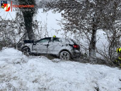 Aus bisher unbekannter Ursache kam ein PKW von der Fahrbahn ab und prallte im Graben gegen einen Baum.